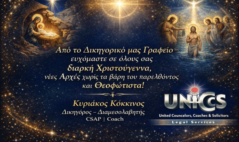 Από το Δικηγορικό μας Γραφείο ευχόμαστε σε όλους σας διαρκή Χριστούγεννα, νέες Αρχές χωρίς τα βάρη του παρελθόντος και Θεοφώτιστα!..